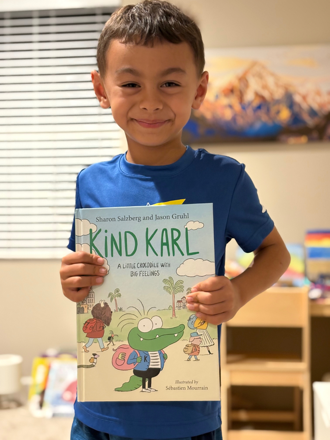If you’re looking for a mindful holiday gift for a little one in your life, I wholeheartedly recommend Sharon Salzberg and Jason Gruhl’s children’s book, Kind Karl: A Little Crocodile with Big Feelings. My son Kailash loves crocodiles, so this story immediately captured his imagination, and it is a beautiful example of how relatable children’s books and stories can gently introduce mindfulness in ways that feel natural for kids.
