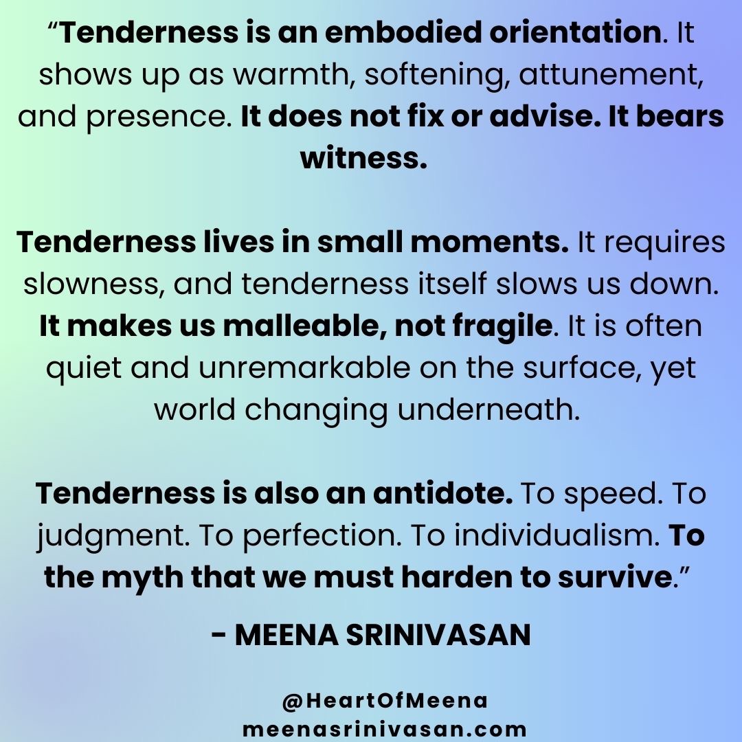 While I was in Oceanside, I also spent quiet time with hundreds of pages of tenderness research. Out of that spaciousness, I’ve begun to surface what I’m now calling Tenderness Truths, the foundations of this next phase of work. Here's what feels most alive to share now: