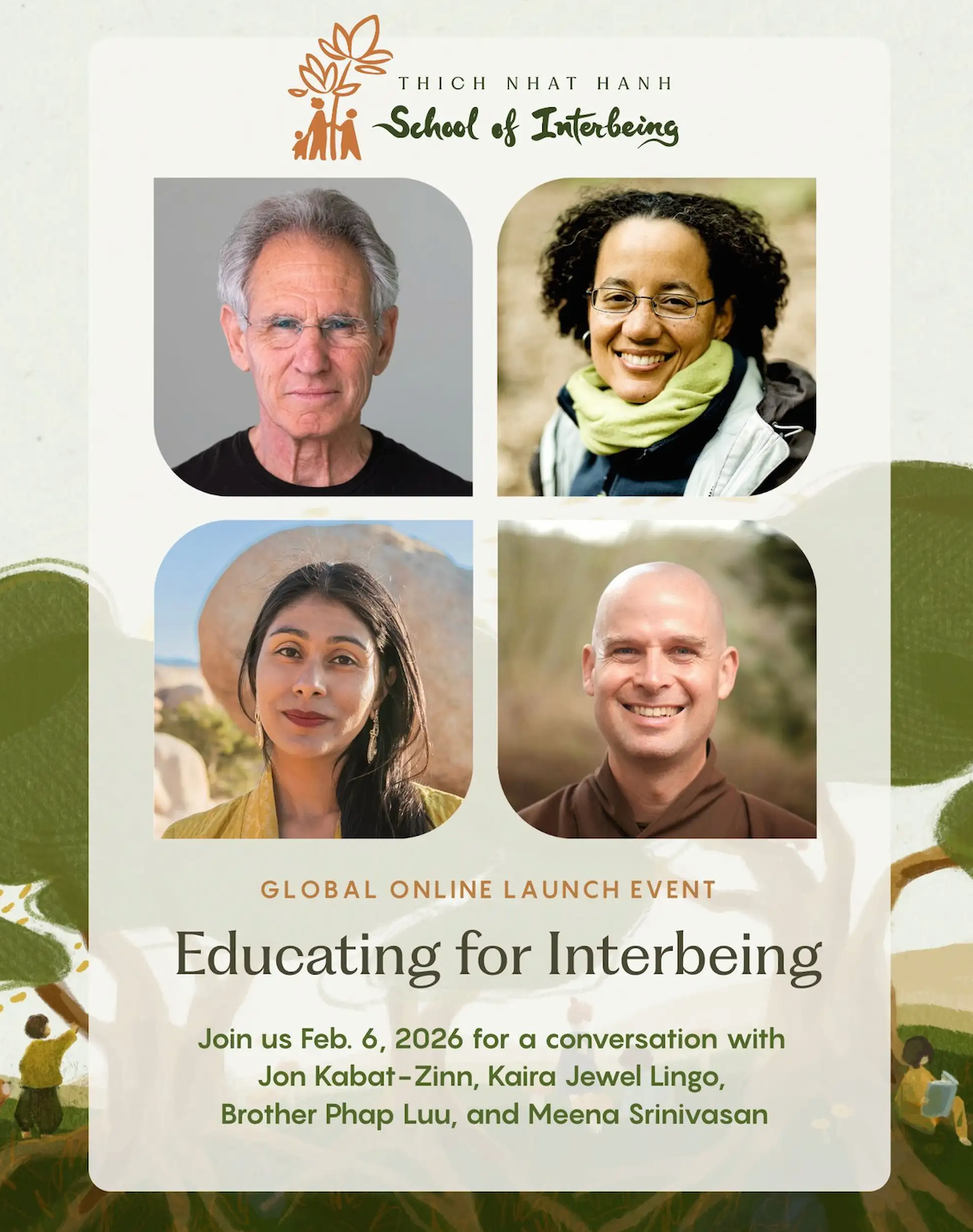 On February 6 at 9am PT / 12pm ET, I will be moderating a free global virtual event, Educating for Interbeing, with Jon Kabat-Zinn, Kaira Jewel Lingo, and Thay Phap Luu. This event marks the global launch of the Thich Nhat Hanh School of Interbeing, a new K–8 school rooted locally in Southern California and designed for the world. I am grateful to serve as a founding board member and parent, and I would love for you to join us if it feels aligned.